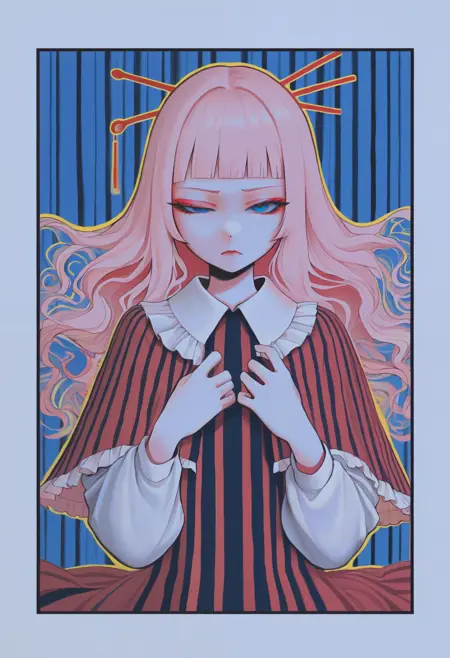 1girl, solo, traditional media, abstract, limited palette
