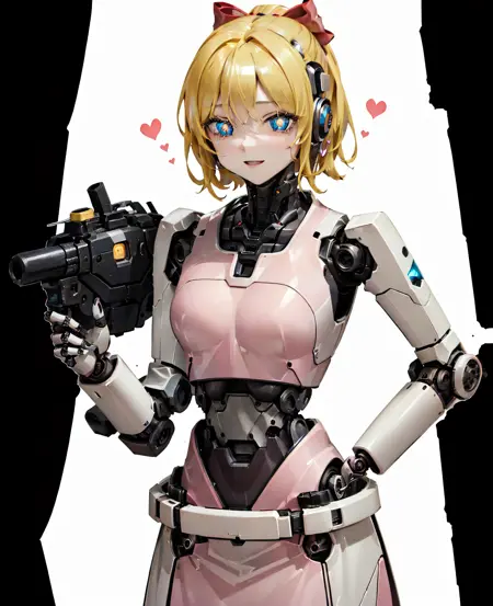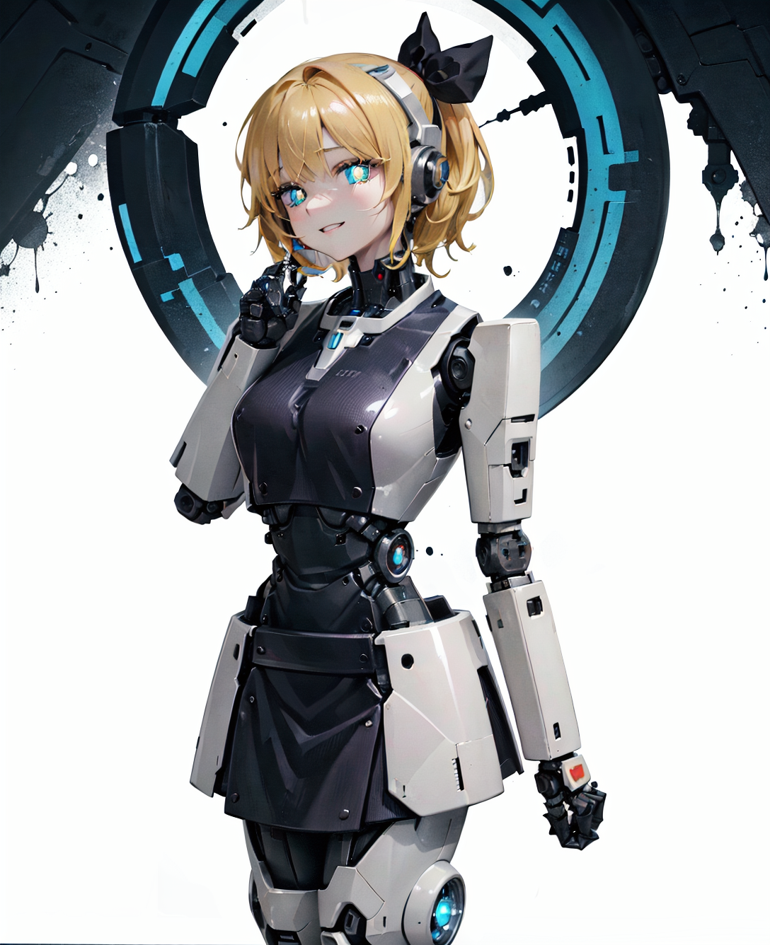 Maybe you can generate fine pics with prompt 'beautybot, kingsman 2, robot joints, android, robot girl, robotization, robotic face, mechanical hair, machine, no humans, glowing pupils, porcelain skin, photorealistic'.