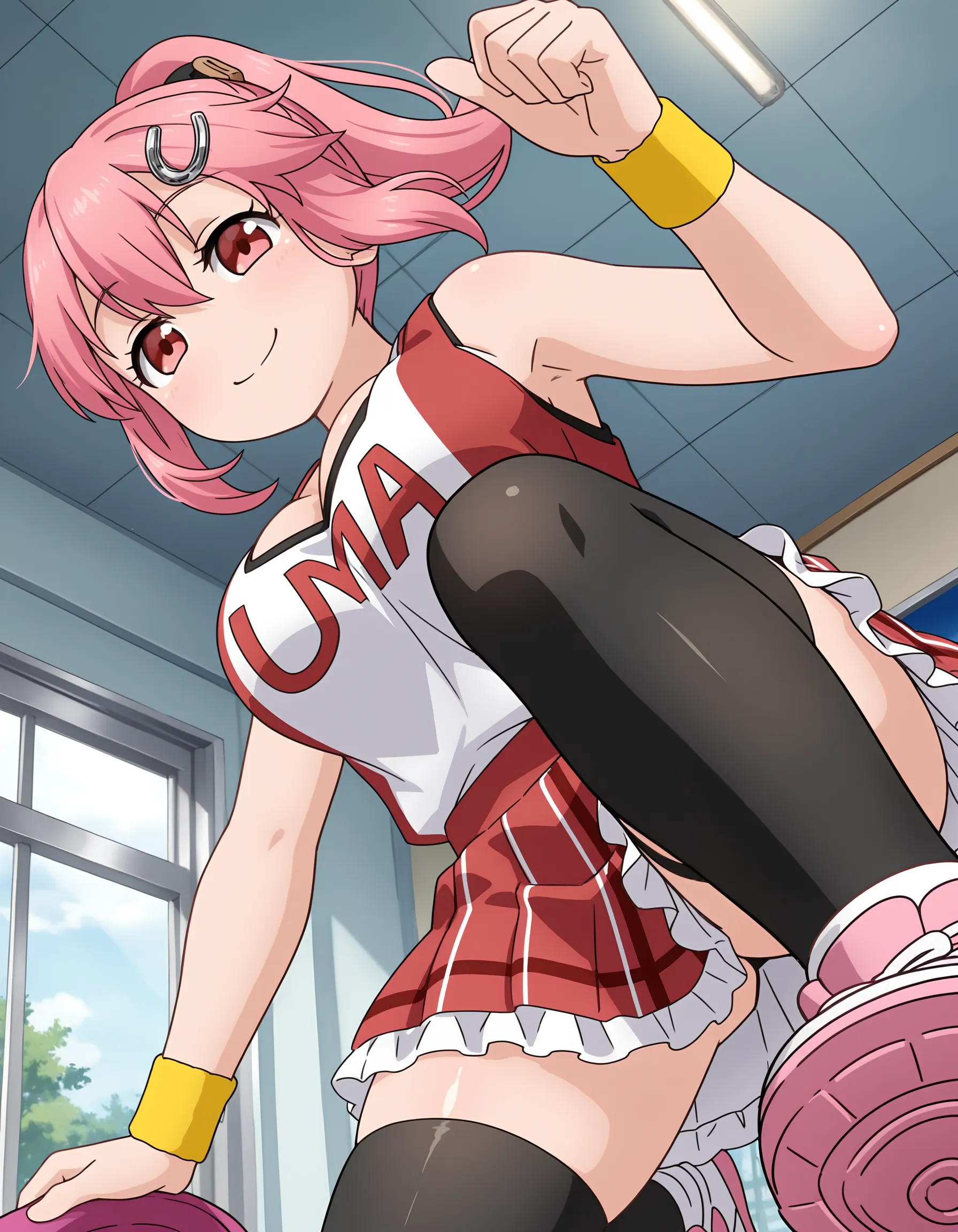 outfit2 : collared shirt,sleeveless,pleated skirt,frilled skirt,zettai ryouiki,black thighhighs