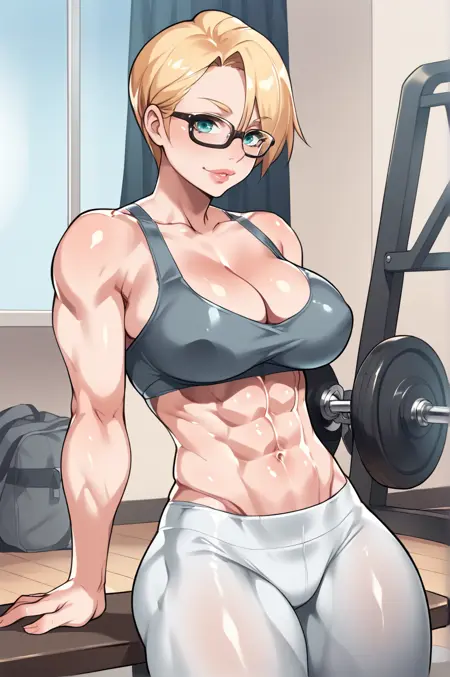 - Appearance - large breasts, short hair, blonde hair, aqua eyes, muscular female, glasses