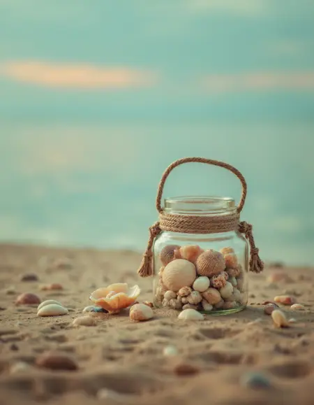 夕暮れ時に、海の優雅に揺れる波の中に静かに立つ女性。肩を少し露わにしたほんのりピンク色のドレスが風になびき、彼女の表情は穏やかで、黄金色の地平線を見つめている。柔らかい温かい光が水面と空を金色に照らしている。lilia-alvarado のスタイルで