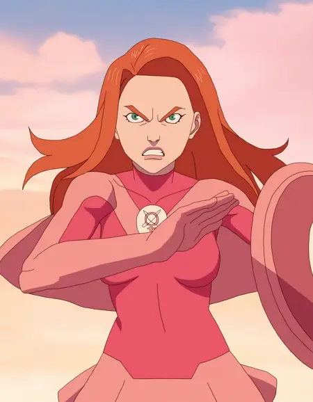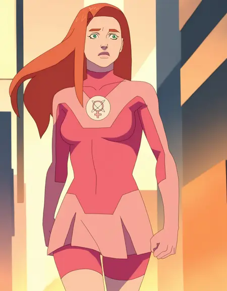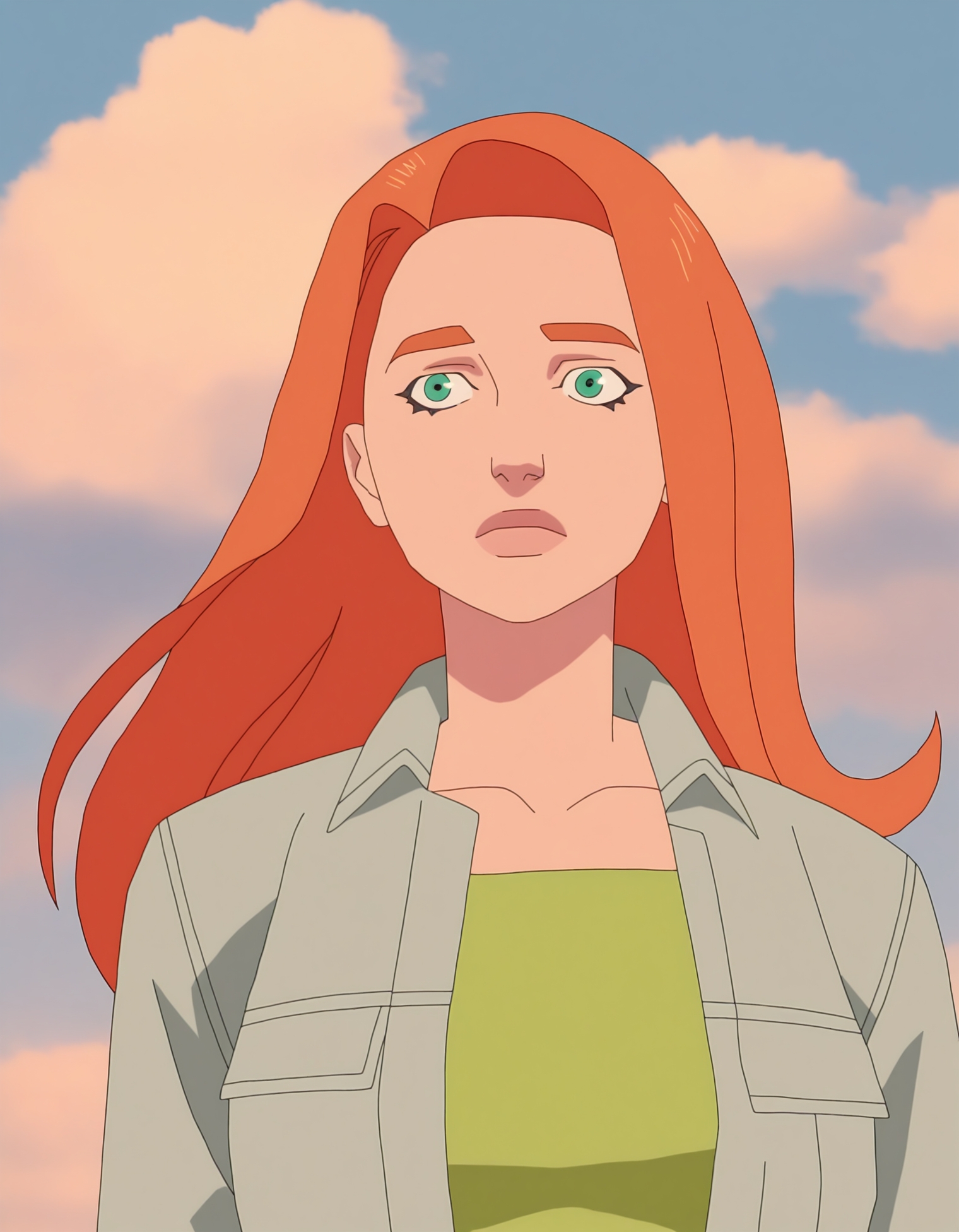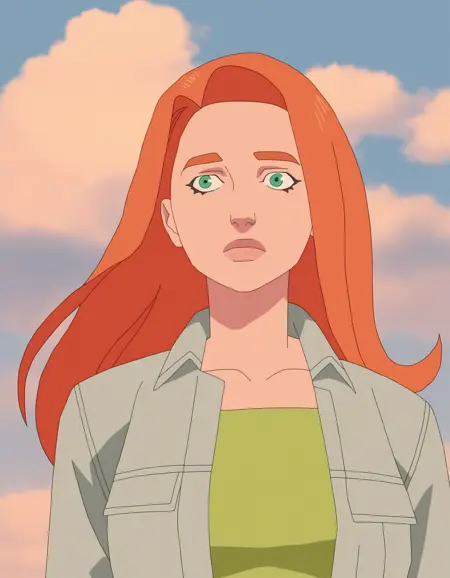 at0m3v3,1girl,长发,紧身衣,斗篷,手套,裙子,绿眼睛