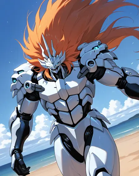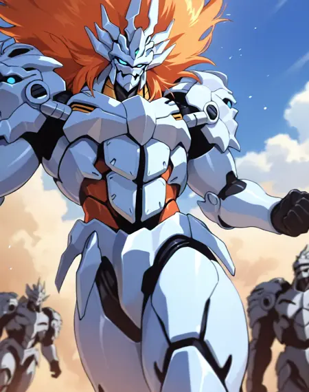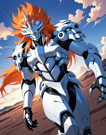 此LoRA的提示词为(Cyguard,Cybernetics Guardian,生物增强装甲,肌肉发达,机器人,机械)。通过添加以下提示词有助于更准确地呈现图像:(橙色头发,白色装甲,蓝色眼睛,红色眼睛,蓝红眼睛)。