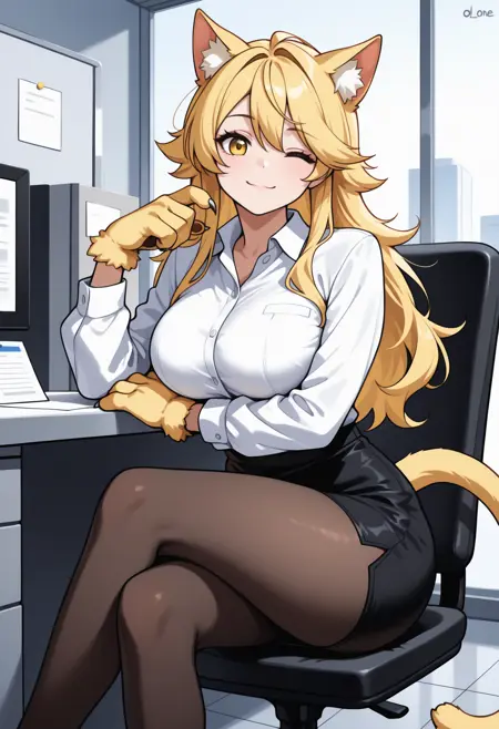 转换后: le0ne, 动物手掌,爪子,猫尾巴,长发,金色头发,动物耳朵,黄眼睛,黑色胸罩,白色袖子,蓬松的独立袖子,白色长裤,马裤,黑色内衣,棕色腰带,腰带扣,露肩,乳沟,大乳房