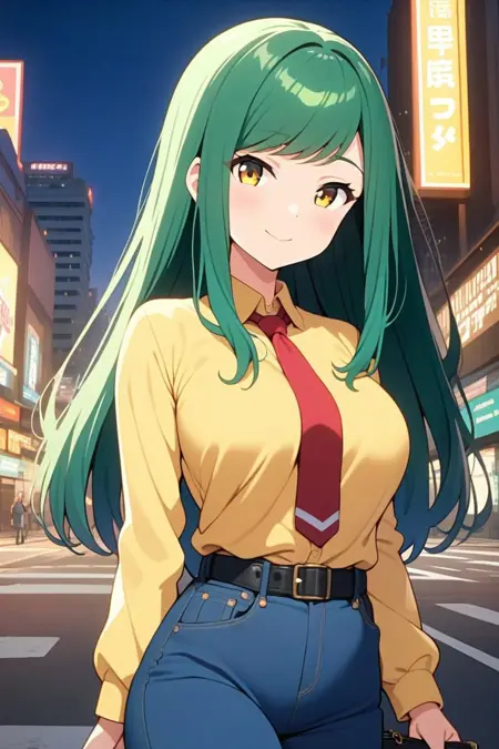 Trigger words: kokonoeshinobu, green hair, swept bangs, long hair, yellow eyes
