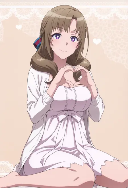 oosuki mamako, purple eyes, bright pupils,mature female, brown hair