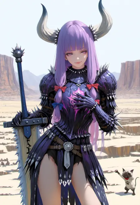 アーティストは主にファンタジー中世風の画像を制作しており、その結果、このLoRaは防具や武器(剣、槍、斧など)の描写に優れています。