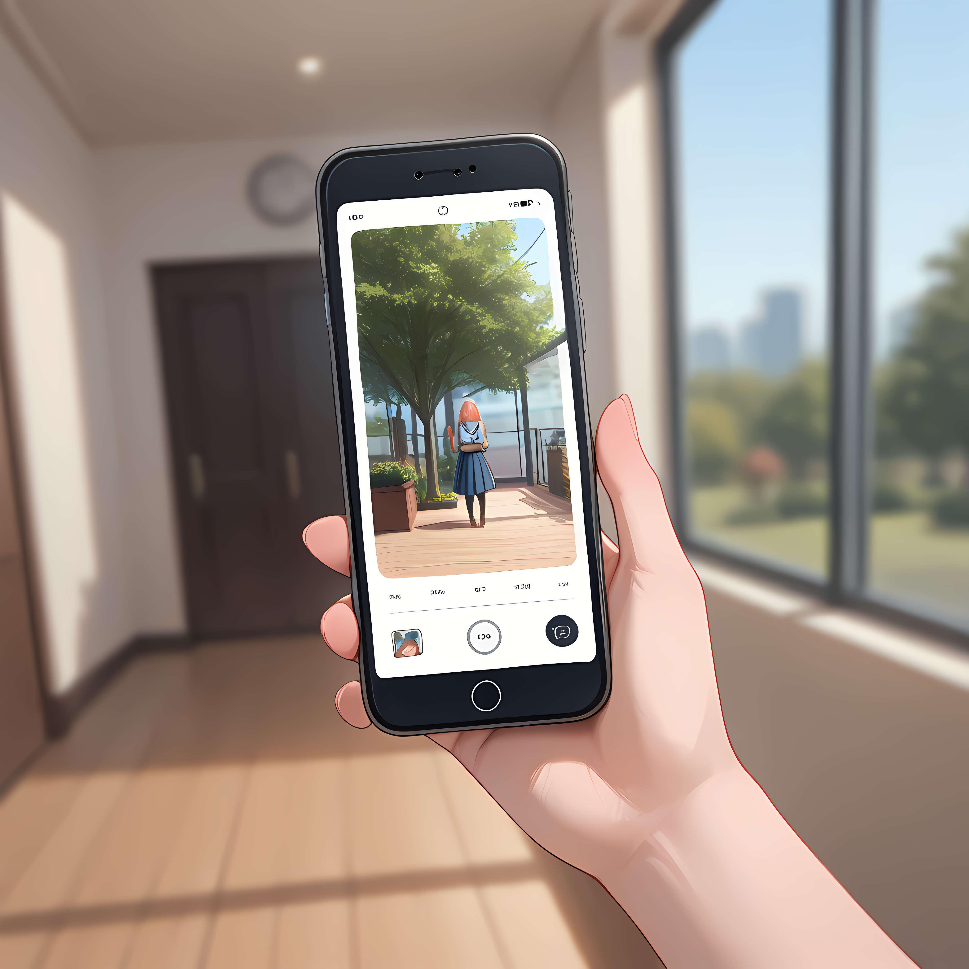Additional: smartphone, pov holding phone,blurry background