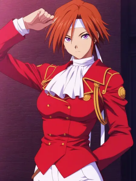 作战服:red uniform, white ascot,white pants,