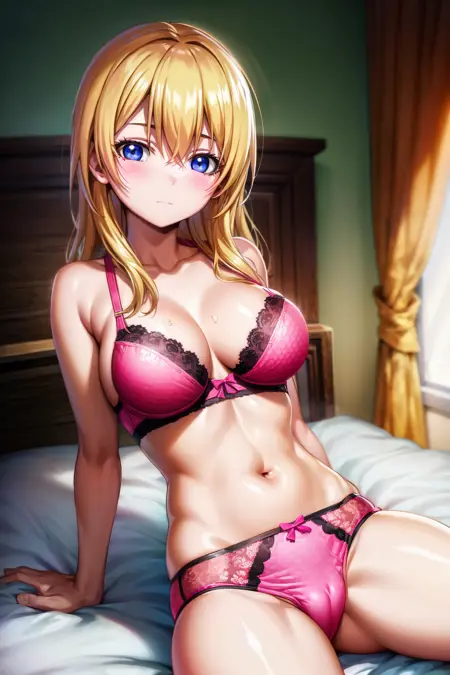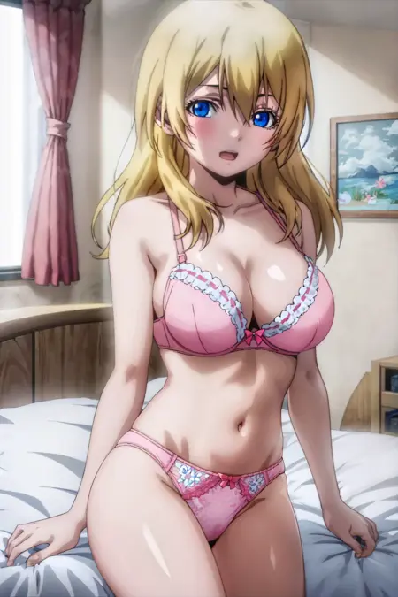 himiko_olis, blonde hair, long hair, blue eyes
