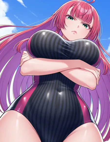 mitsumoto dia, 粉色头发,长发,呆毛,齐刘海,绿眼睛,嘴唇