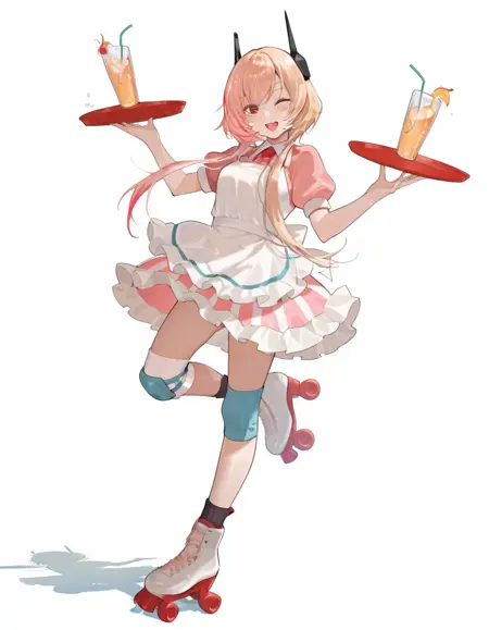 RacingParfait,RP_dress, RP_apron, RP_headgear, RP_roller_skates, RP_knee_pads
