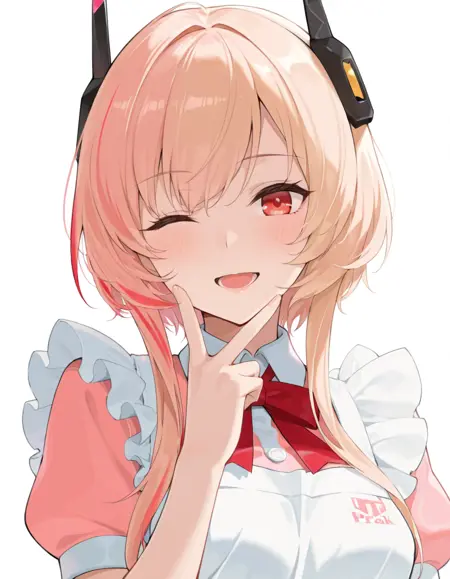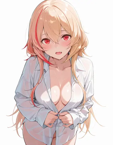 long hair, blonde hair, pink hair, streaked hair, red hair, red eyes