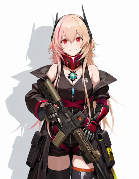 SopmodMOD3, MOD3_short_jumpsuit, MOD3_coat, MOD3_battle_mask, MOD3_chest_jewel, MOD3_coat_straps,单机械臂, m4 carbine, MOD3_headgear, MOD3_single_glove, MOD3_thighhighs, MOD3_boots