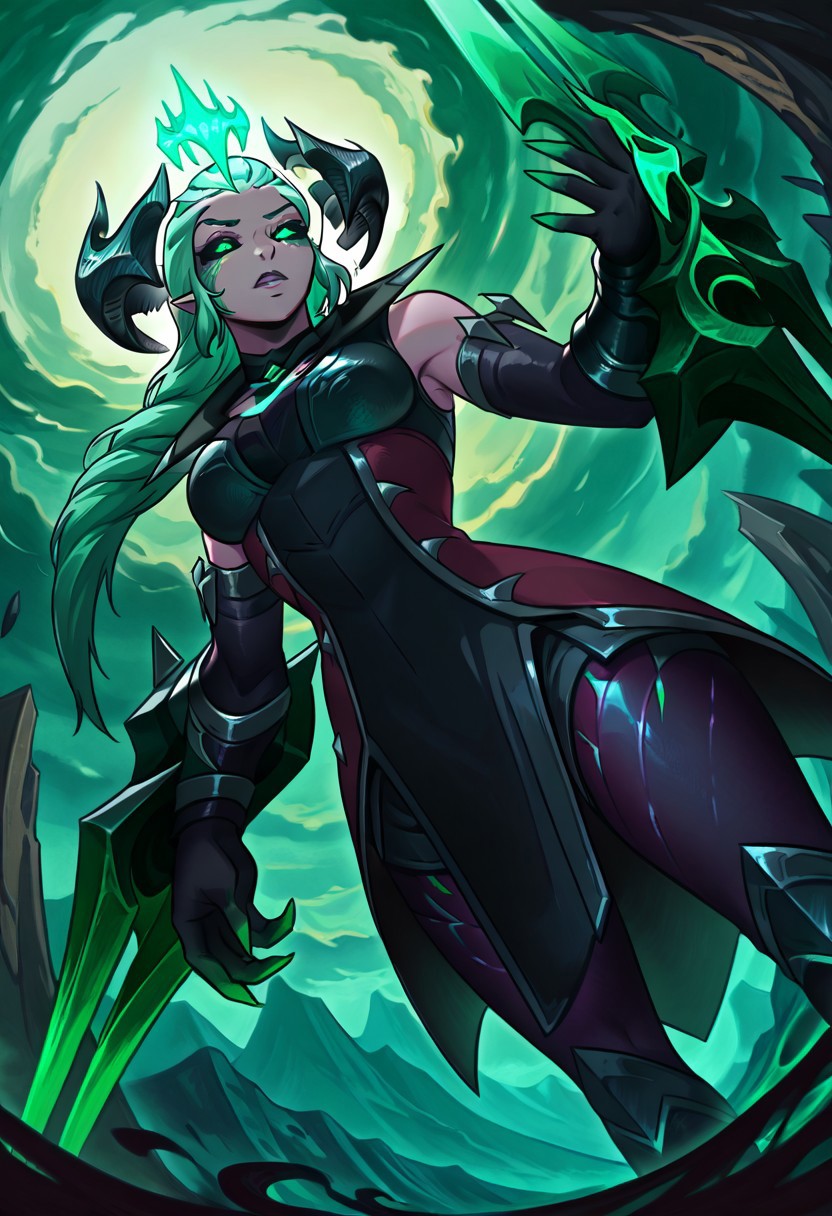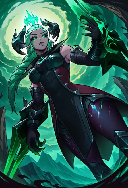 This time, the LoRA is based on Ruined Shyvana, a version of Shyvana wearing the ruined skin from the game League of Legends.