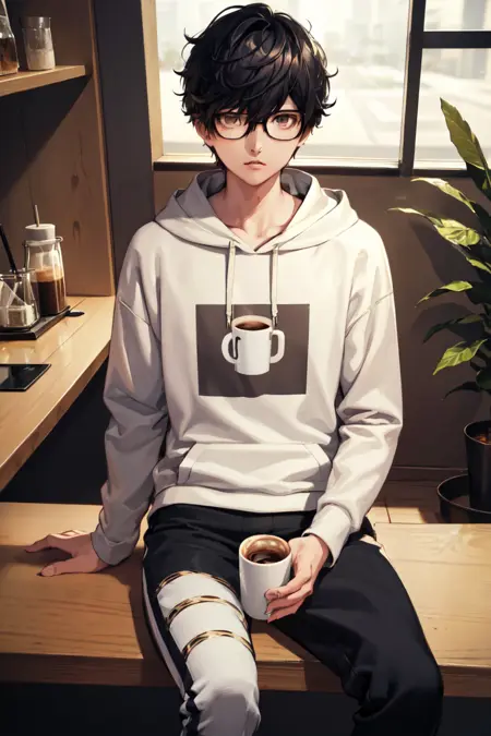 "AmamiyaRen, 안경, shuujin academy 학생 복장, 체크 무늬 바지, 터틀넥"