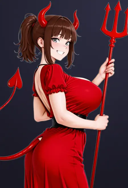 이 LoRA는 빨간 삼지창을 들고 고전적인 악마 코스튬을 입은 소녀를 생성할 수 있습니다.