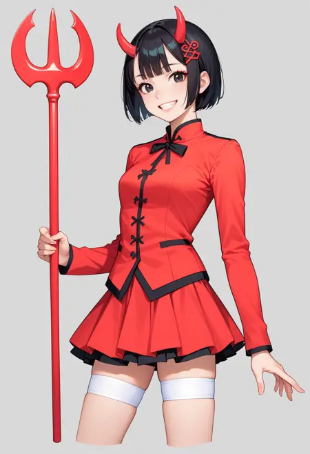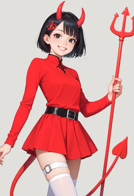 よくある赤いトライデントを持った悪魔のコスプレをした女の子ができるかもしれないLoRAです。
