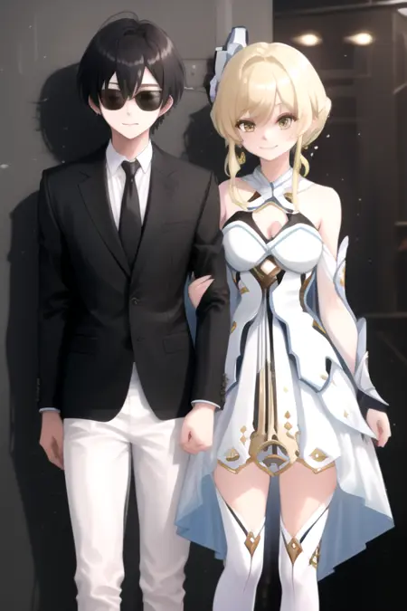 MIBLumine, a man and a woman, hetero, standing, smile, cowboy shot