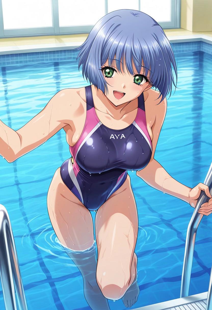수영복, 원피스 수영복, 파란색 수영복, 대회용 수영복