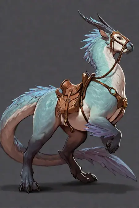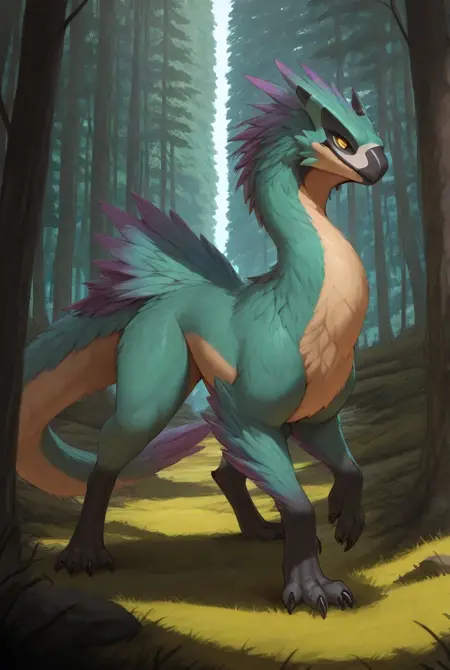 野生形態アドオン:野生的、四足または二足姿勢、流線型のラプター体型、羽の生えた四肢、爪のある足