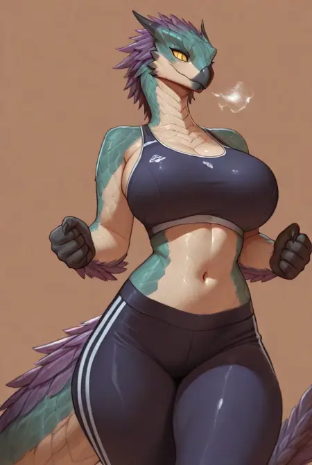 人型アドオン:人型、二足歩行、筋肉質な鳥型ドラゴンハイブリッド、翼のある腕、指行性のラプター脚、羽の生えた太もも、爪のある手