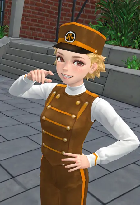 harriet, solo, blonde hair, 1girl, short hair, brown eyes, vest, shirt, pants, freckles, hat,black footwear