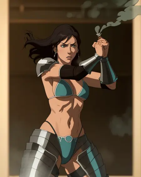 V1.18 版本无需触发词!直接使用 LoRA:<lora:legendOfKorrav118:0.7>