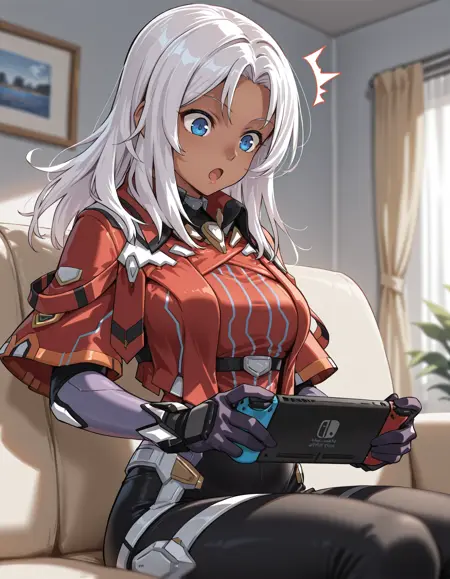 elma, gloves, cropped jacket, bodysuit under clothes, red shirt, loose belt, thigh bootselma, cropped jacket, red bikini, swimsuit