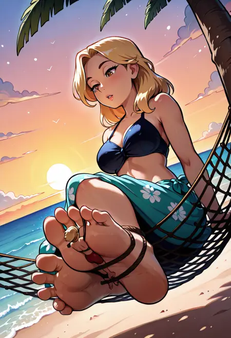 작은 사람(또는 시청자)이 거대한 여자의 발에 묶여 있는 이미지를 묘사합니다. 이를 여러 버전으로 출시할 예정입니다. 각 버전의 프롬프트 지침은 제공되는 대로 버전 세부 정보를 확인하세요: