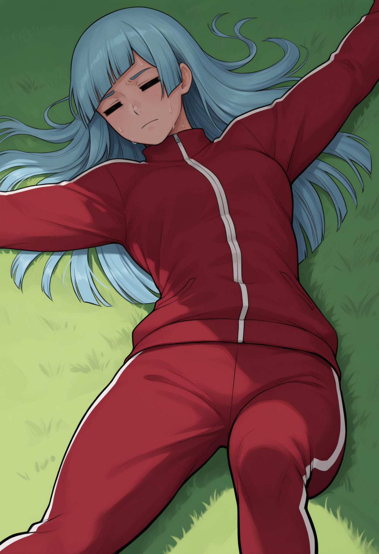 트리거 + 외모: m1wa, 긴 머리, 파란 머리, 곧은 머리, 둔한 앞머리, 대각선 앞머리, 파란 눈