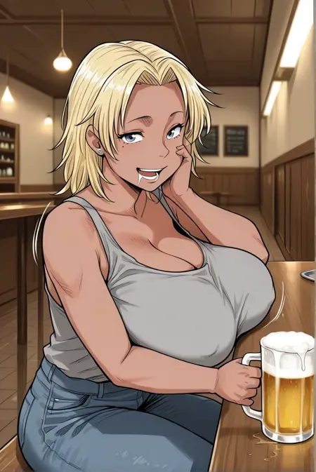 • m4kin0bu, 1girl, 금발, 중간 길이 머리, 밝은 피부, 눈 밑 점