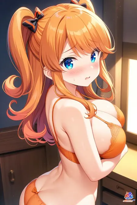 Trigger words: sagaraemi, orange hair, two side up, hair bow, long hair, blue eyes
