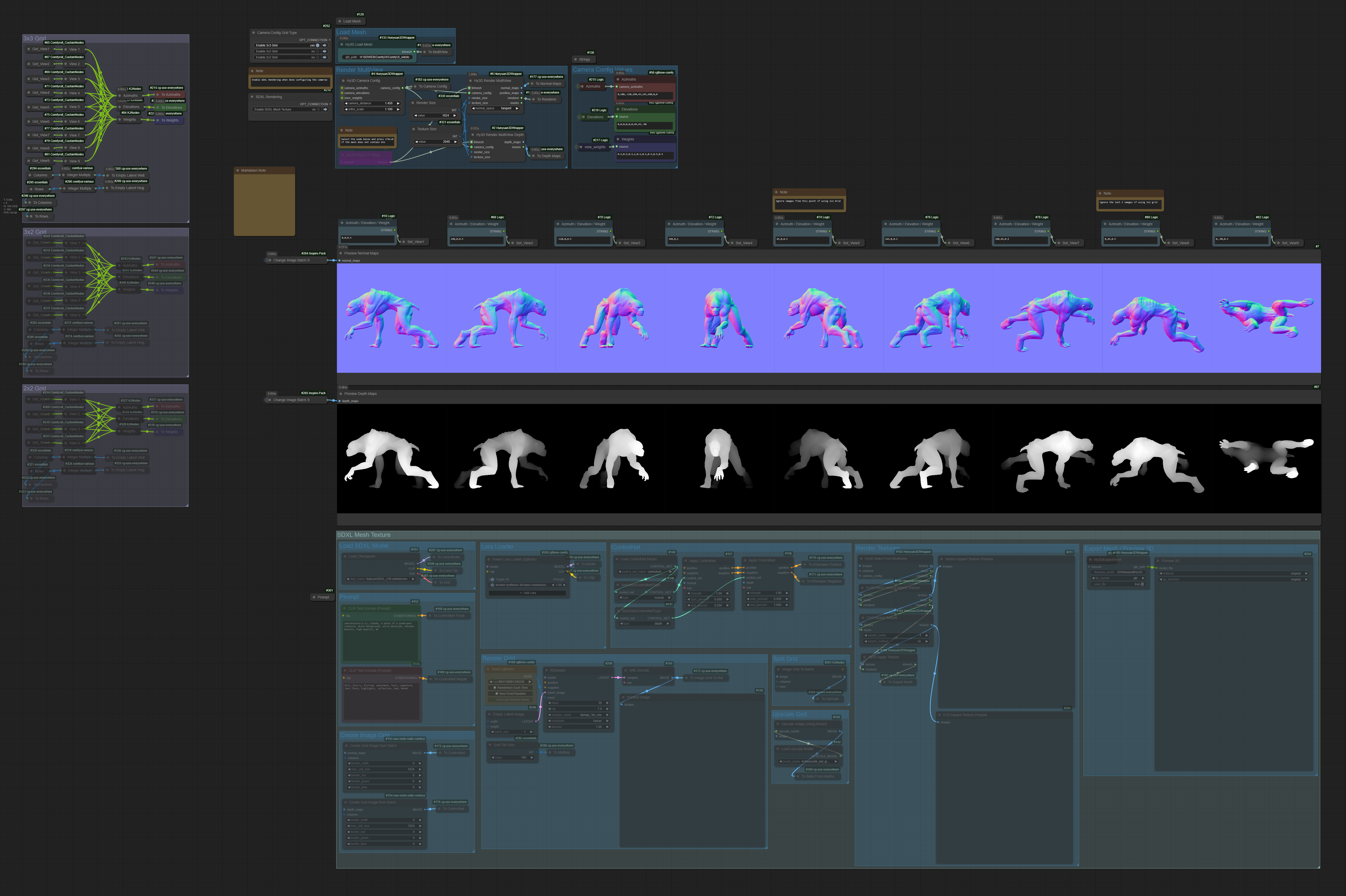 이 워크플로우는 Hunyuan 3D, SDXL 및 ControlNet을 사용하여 기존 메시에 텍스처를 적용하는 데 사용됩니다.