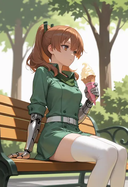 触发词 + 外观: s3ryu, 机械臂, 长发, 棕发, 马尾, 棕色眼睛