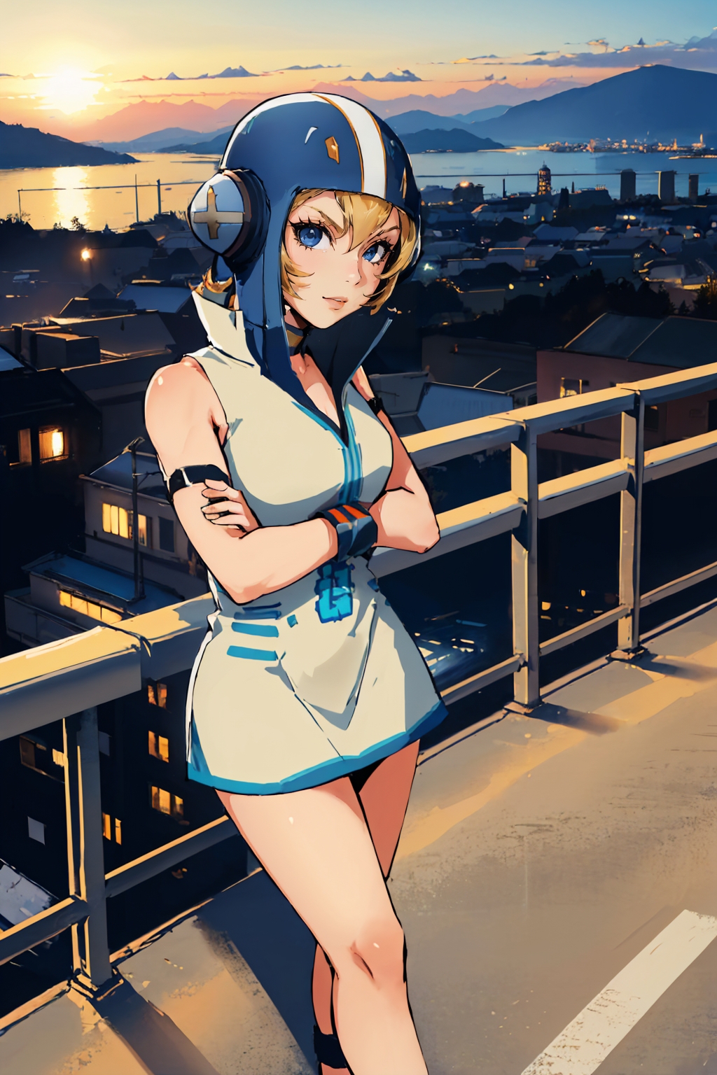 原版: jsrgum, helmet, short dress, striped sleeves, white gloves, roller skates
