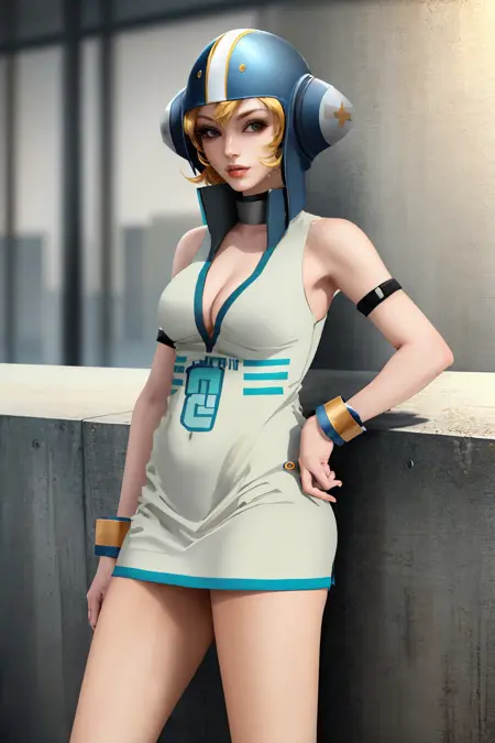 如需,可添加 blonde hair。建议在使用她的未来外观时使用 adetailer