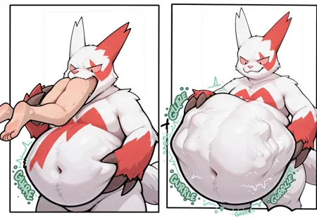 该LoRA基于“食用序列”(即“之前/之后”)的概念,描绘猎物被捕食者吞咽的过程。