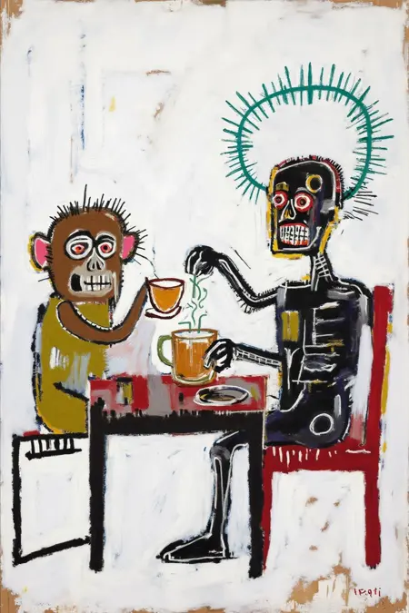 두 사람은 워홀의 팝 아트 미학과 바스키아의 원시적 표현주의를 결합한 일련의 회화를 협업했습니다.