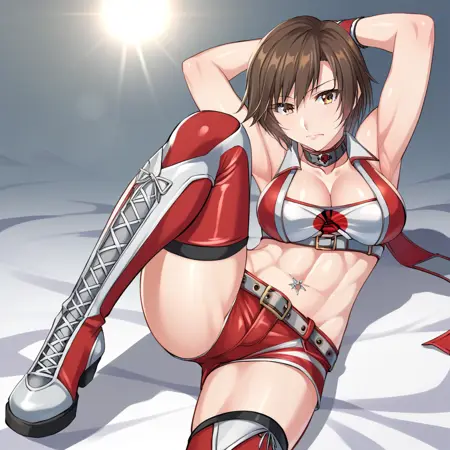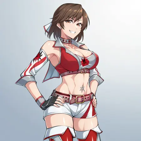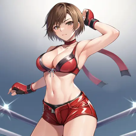 | Trained Words | RRXX_Reiko_Hinomoto, 1girl, solo, short hair, brown hair, brown eyes, large breasts, cleavage, navel, wrestling outfit, red shorts, short shorts, red gloves, fingerless gloves, choker, collarboneCopied! RRXX_Reiko_HinomotoSS, 1girl, solo, short hair, brown hair, brown eyes, large breasts, cleavage, navel, midriff, piercing, choker, race queen, gloves, fingerless gloves, clothing cutout, wrestling outfit, crop top, miniskirt, belt, thighhighs, bootsCopied! |