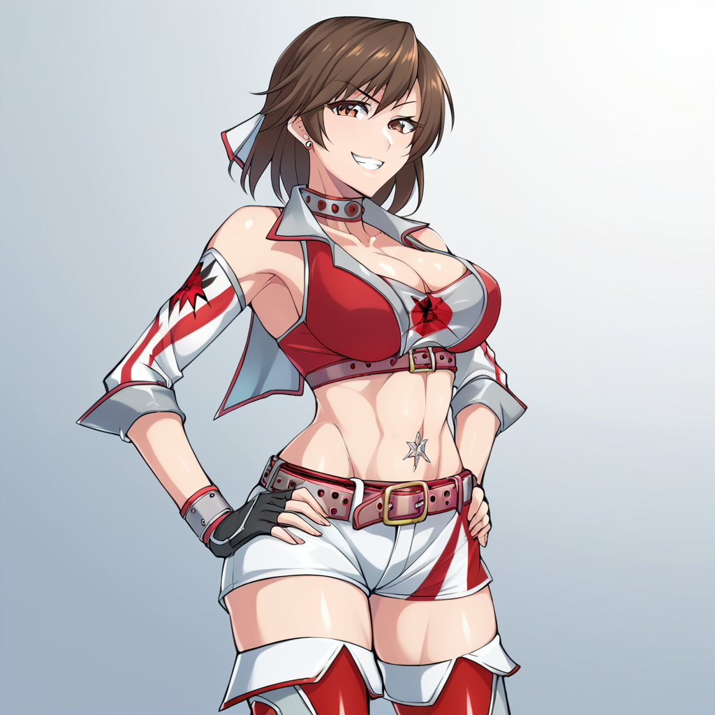 | 학습된 단어 | RRXX_Reiko_Hinomoto, 1girl, solo, short hair, brown hair, brown eyes, large breasts, cleavage, navel, wrestling outfit, red shorts, short shorts, red gloves, fingerless gloves, choker, collarbone복사됨! RRXX_Reiko_HinomotoSS, 1girl, solo, short hair, brown hair, brown eyes, large breasts, cleavage, navel, midriff, piercing, choker, race queen, gloves, fingerless gloves, clothing cutout, wrestling outfit, crop top, miniskirt, belt, thighhighs, boots복사됨! |