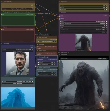 ReVision is a new technique implemented into comfyui that allows you to take 2 different images, and use the new Clip_vision_g to mix the elements of each picture into 1 new picture!