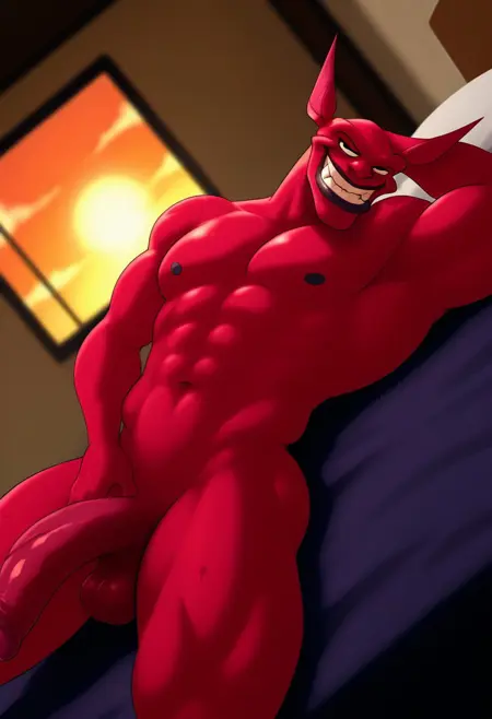 強化プロンプト:「モンスターの少年、色付きの肌、赤い肌、黒い目、筋肉質、引き締まった男性、アスレチックな体型、大きな胸板」