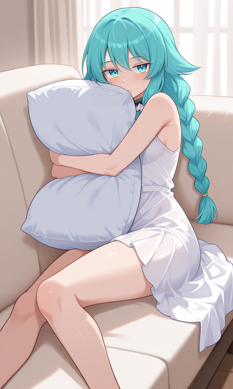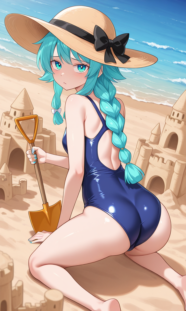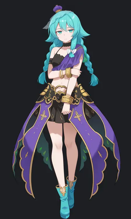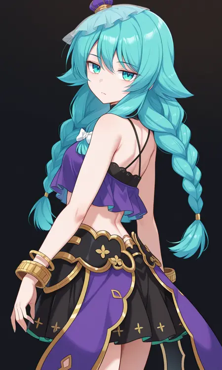 mordimort, twin braid, aqua hair, Jewlery, naval, bracelet, sleeveless, skirt, small crown
