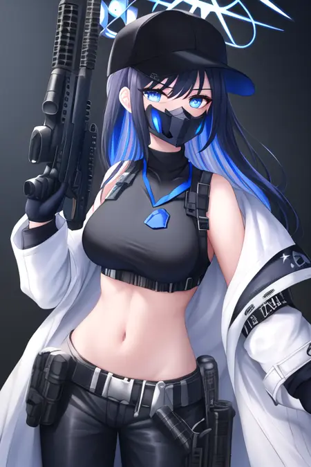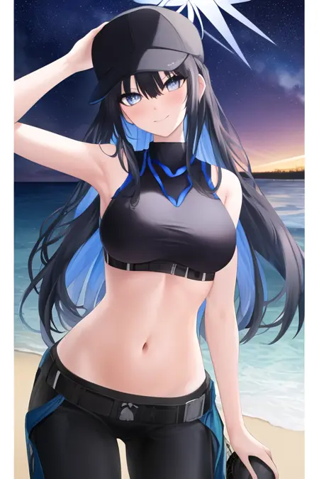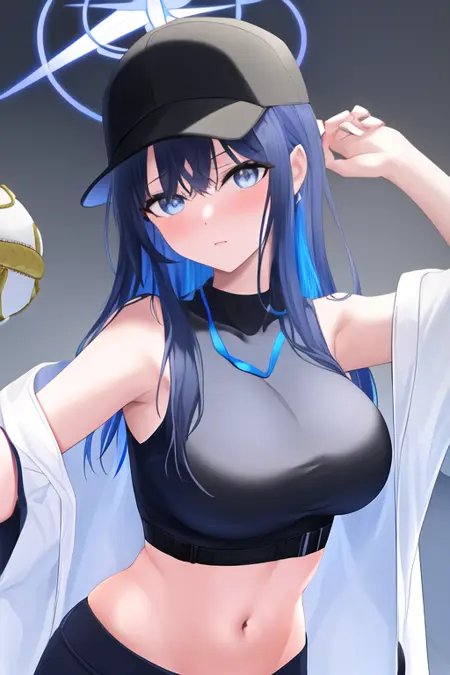 The trigger word is saori_bluearchive, and the pruned tags are long_hair, breasts, halo, blue_eyes, blue_hair, black_hair, large_breasts, multicolored_hair, baseball_cap, hat. When some features (e.g. hair color) are not so stable at some times, you can add these them into your prompt.