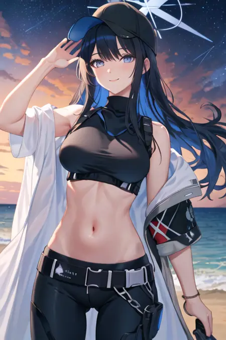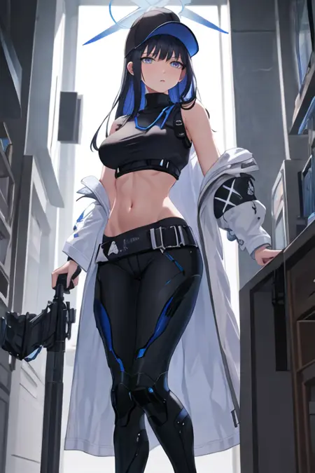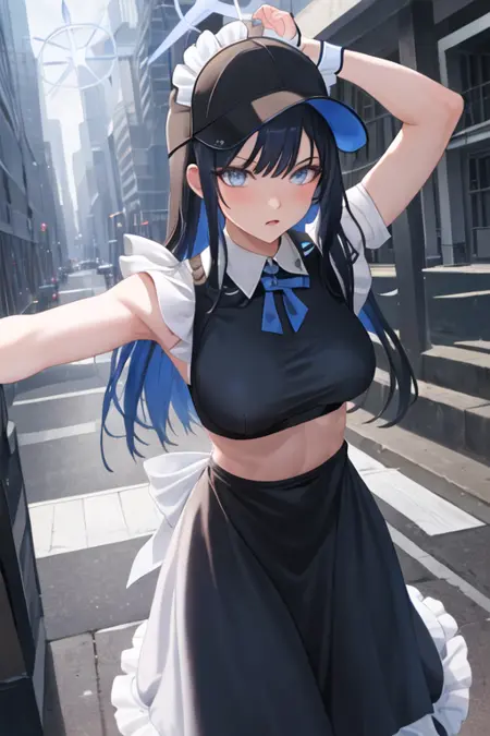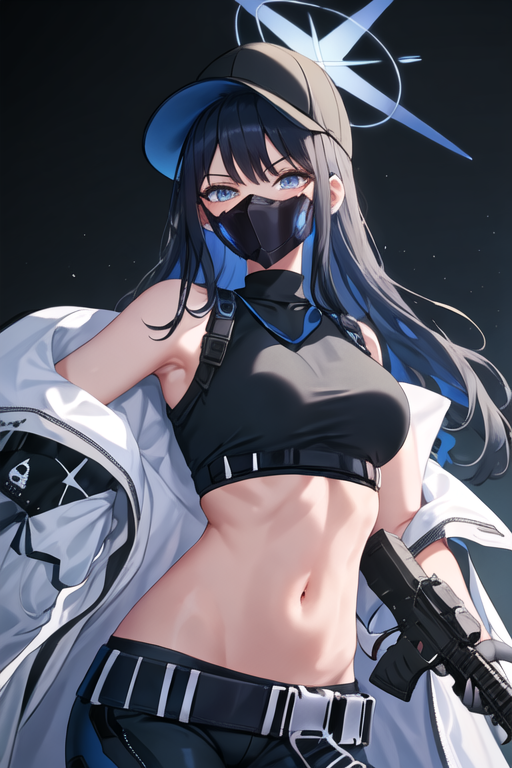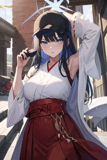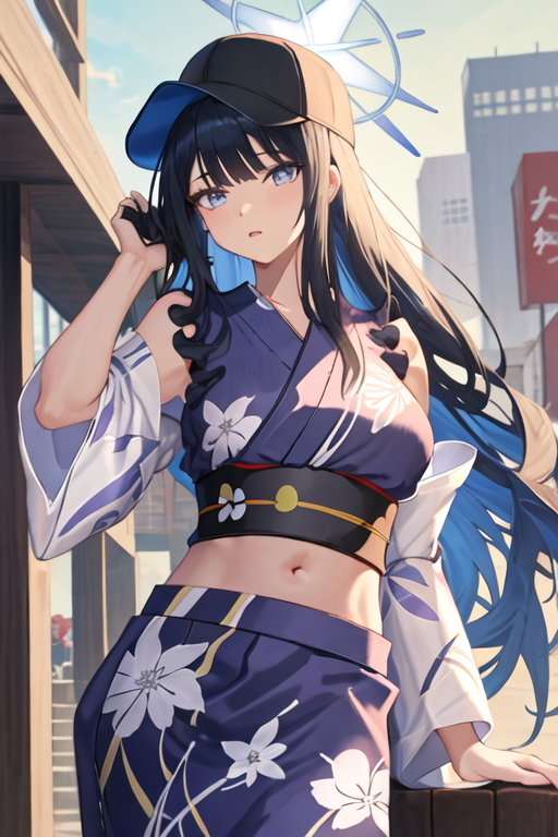 The trigger word is saori_bluearchive, and the pruned tags are long_hair, breasts, halo, blue_eyes, blue_hair, black_hair, large_breasts, multicolored_hair, baseball_cap, hat. When some features (e.g. hair color) are not so stable at some times, you can add these them into your prompt.