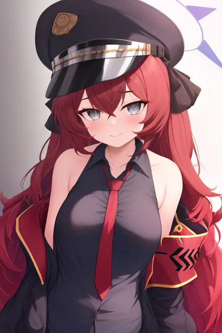 The trigger word is iroha_bluearchive, and the pruned tags are red_hair, long_hair, halo, grey_eyes, hair_between_eyes, hat, peaked_cap, black_headwear, very_long_hair, wavy_hair, military_hat. When some features (e.g. hair color) are not so stable at some times, you can add these them into your prompt.