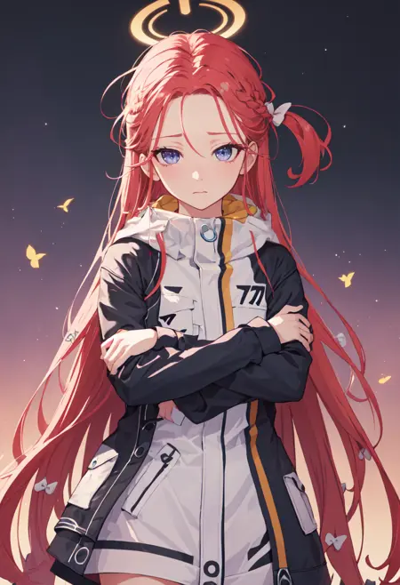 - The pruned character tags are red hair, long hair, halo, bow, hair bow, very long hair, braid, yellow halo, white bow, purple eyes, blue eyes. You can add them into prompts when core features (e.g. hair color) of character is not so stable.