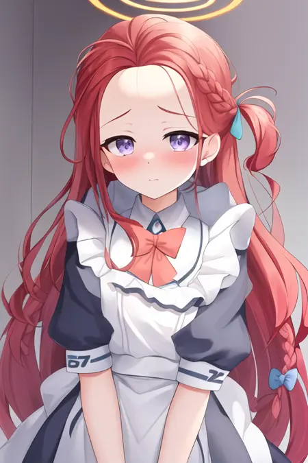 触发词为 yuzu_bluearchive,剪枝标签为 red_hair, long_hair, halo, bow, hair_bow, very_long_hair, braid, yellow_halo, white_bow, purple_eyes, blue_eyes。当某些特征(例如发色)有时不够稳定时,您可以将这些标签添加到提示词中。