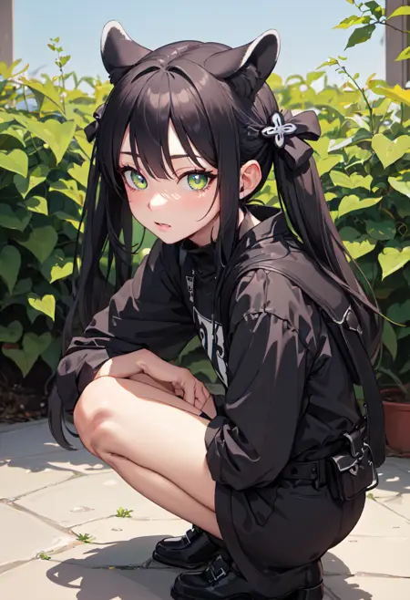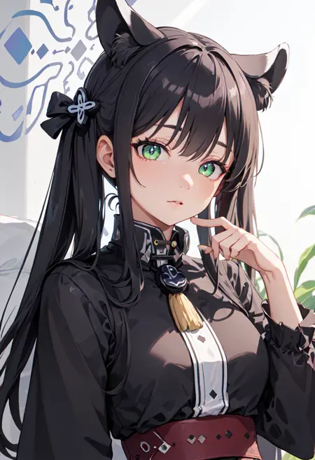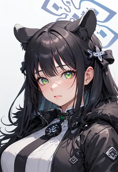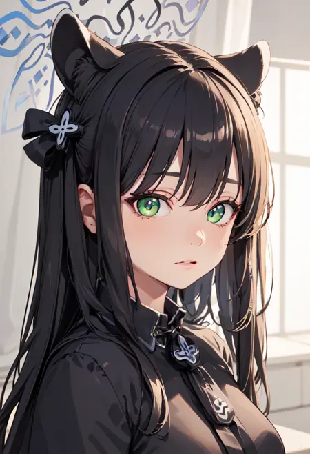 触发词为 shun_bluearchive,精简标签为 black_hair, long_hair, animal_ears, green_eyes, tiger_ears, halo, animal_ear_fluff, twintails, breasts, tiger_girl, extra_ears。当某些特征(如发色)有时不够稳定时,您可以在提示词中加入这些标签。